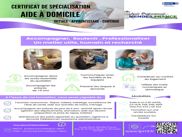 • Certificat de Spécialisation Aide à Domicile (CS AD)