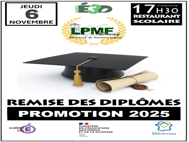 Remise des diplômes le 6 Novembre 2025 au restaurant scolaire. Laisser un commentaire Remise des diplômes le 6 Novembre 2025 à 17h30 au restaurant scolaire