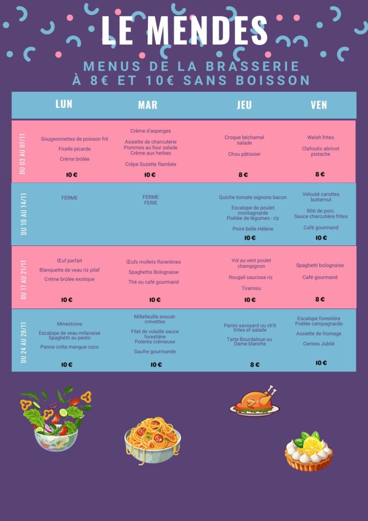 Bar brasserie ouvert tous les jours, de 12h10 à 13h20, sauf le mercredi